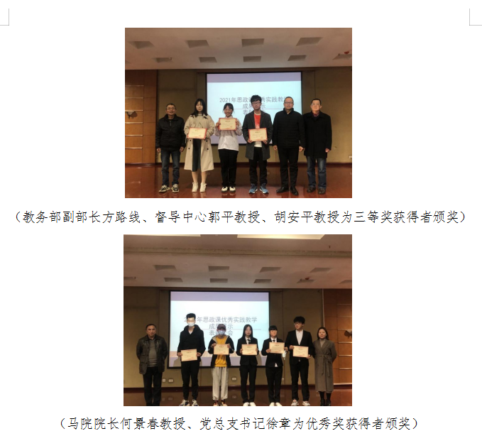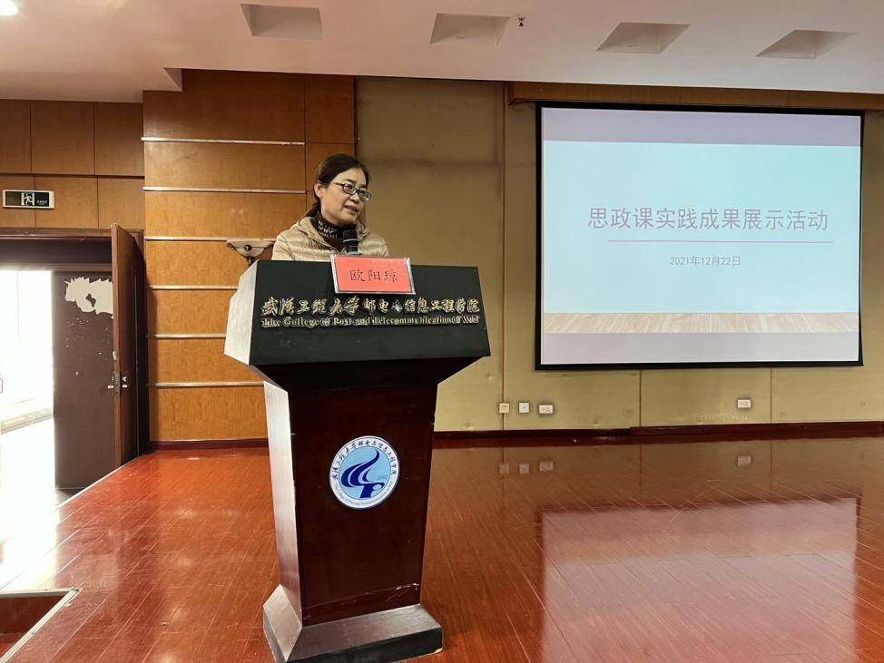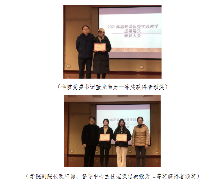 (撰稿 黄杉)12月22日下午,2021-2022学年度第一学期思想政治理论课优秀实践教学成果展示及评选活动在三教六楼多功能报告厅圆满结束。公司党委书记董光尚,公司副经理欧阳琼莅临指导。欧阳琼副经理、督导中心主任范汉中教授、督导中心郭平教授、督导中心胡安平教授、教务部方路线副部长、公司经理何景春教授、公司徐章书记受邀担任评委,思政课教师、展示小组和员工代表全程参加。思政课教师根据分工、各司其责,20法学02班袁美怡同学主持、20法学03班江启旭同学计分,共同保障了活动有序开展。