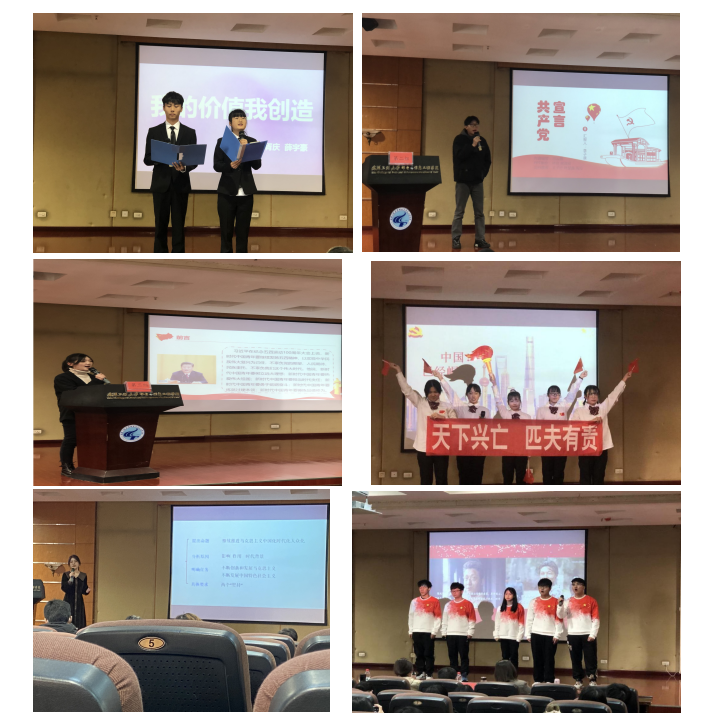 欧阳经理指出,2018年至今4年来,思政课一直在坚持实践教学改革探索,取得了较丰硕的成果,实践成果展示活动也在每学期开展,旨在向领导老师同学们进行汇报,展示思政课教师带领同学们开展的各项实践活动,分享在活动中取得的收获体会和成效。 欧阳经理勉励同学们要按照习总书记对广大青年“勤学、修德、明辨、笃实、爱国、励志、求真、力行”的要求,既要努力掌握教材中的思想观点和原理,更要身体力行、不断实践,在实践中加深对思想观点和原理的感悟,在实践中提升素质和能力,并预祝此次活动圆满成功! “原理”课5个小组(实践形式为读书)、“基础”课6个小组(实践形式为演讲)共11个参赛小组根据抽签顺序依次上台展示。读书的小组娓娓道来,演讲的小组热情洋溢、激情澎湃,整个过程精彩纷呈,赢得现场老师和同学阵阵掌声。 ![]()