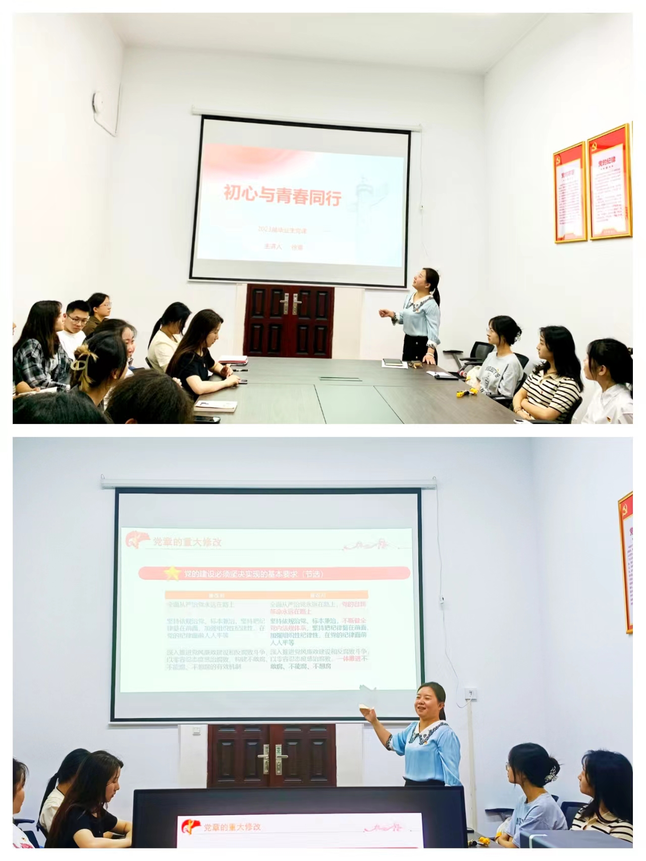 在徐章书记的带领下,全体师生党员重温入党誓词。徐书记以“初心与青春同行”为题,给党员们讲廉洁教育专题党课。她阐述了廉洁教育的重要性和必要性,结合违纪违法典型案例,介绍当前我国党风廉政建设形势,告诫党员们要以案为戒,筑牢思想防线,确保遵规纪、品德优良。党课内容丰富、贴近实际,具有较强的针对性和实用性,有助于引导毕业生党员增强纪律意识、规矩意识。她对2023届全体毕业生党员提出期望:一要筑牢理想信念,牢记党员身份,不忘初心使命,加强党性修养,自觉遵纪守法,守好原则和底线,谨记“厚德明志勤奋笃行”的校训,走好迈出校园的每一步;二要志存高远,脚踏实地,胸怀“国之大者”,将个人理想融入国家发展之中,展现党员担当。