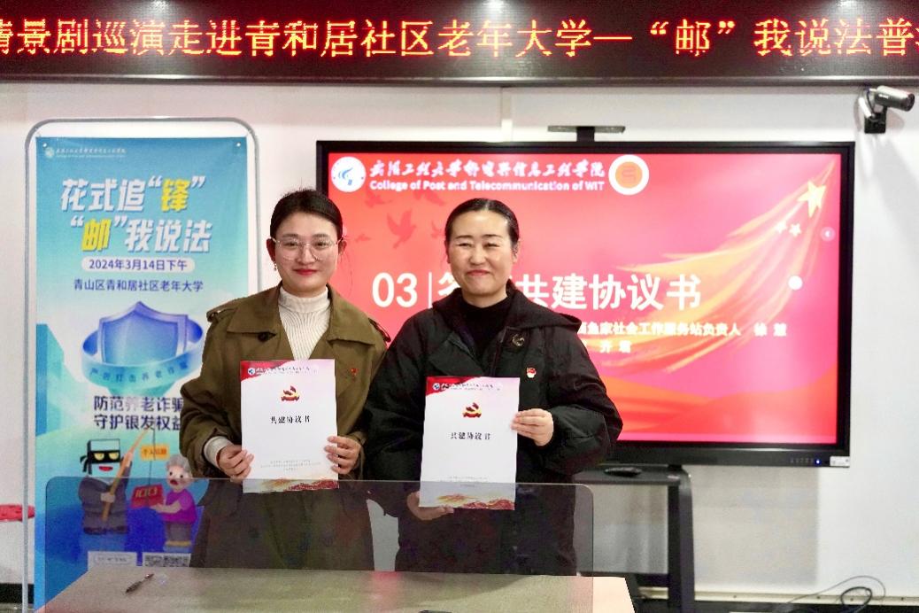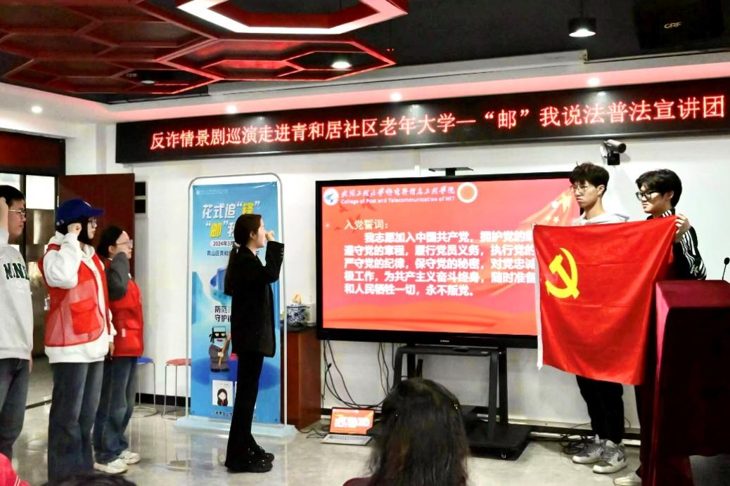 (通讯员:徐特)为贯彻落实习近平总书记对深入开展学雷锋活动作出的重要指示精神,深刻把握雷锋精神的时代内涵,2024年3月14日,球王会第三党支部师生党员赴青和居社区老年大学开展“花式追‘锋’‘邮’我说法”特色主题党日活动。 (一)活动主题 花式追“锋” “邮”我说法 (二)参与人员 青山区妇联兼职副主席、西鱼家社会工作服务站负责人徐慧,公司党总支书记齐君、副书记何瑞莉,球王会第三党支部全体党员,“邮”我说法普法宣讲团成员代表。 (三)活动纪实 为大力弘扬雷锋精神,同时进一步增强社区居民的法制观念,提升居民知法、懂法、守法、用法的意识,2024年3月14日下午,球王会第三党支部师生党员赴青和居社区老年大学开展特色主题党日活动,以实际行动花式追“锋”,切实守护“银发”权益。活动由员工党员杨震芳主持。