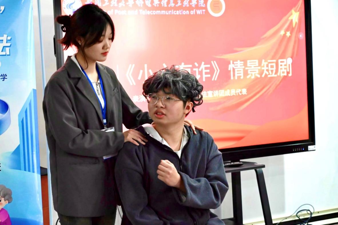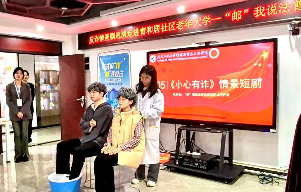 “邮”我说法普法宣讲团成员们自编自导自演的普法小剧场《小心有诈》还原了投资返利骗局,大家用声情并茂的表演、绘声绘色的讲述,将法律知识、社会热点问题以情景剧的方式呈现,寓教于乐,为社区的老人们带来了一场“沉浸式”的法治体验。社区居民表示:“普法小剧场新鲜又有趣,我们更能听得进去,在观看剧情同时学以致用,希望以后有更多的普法小剧场走进社区。”