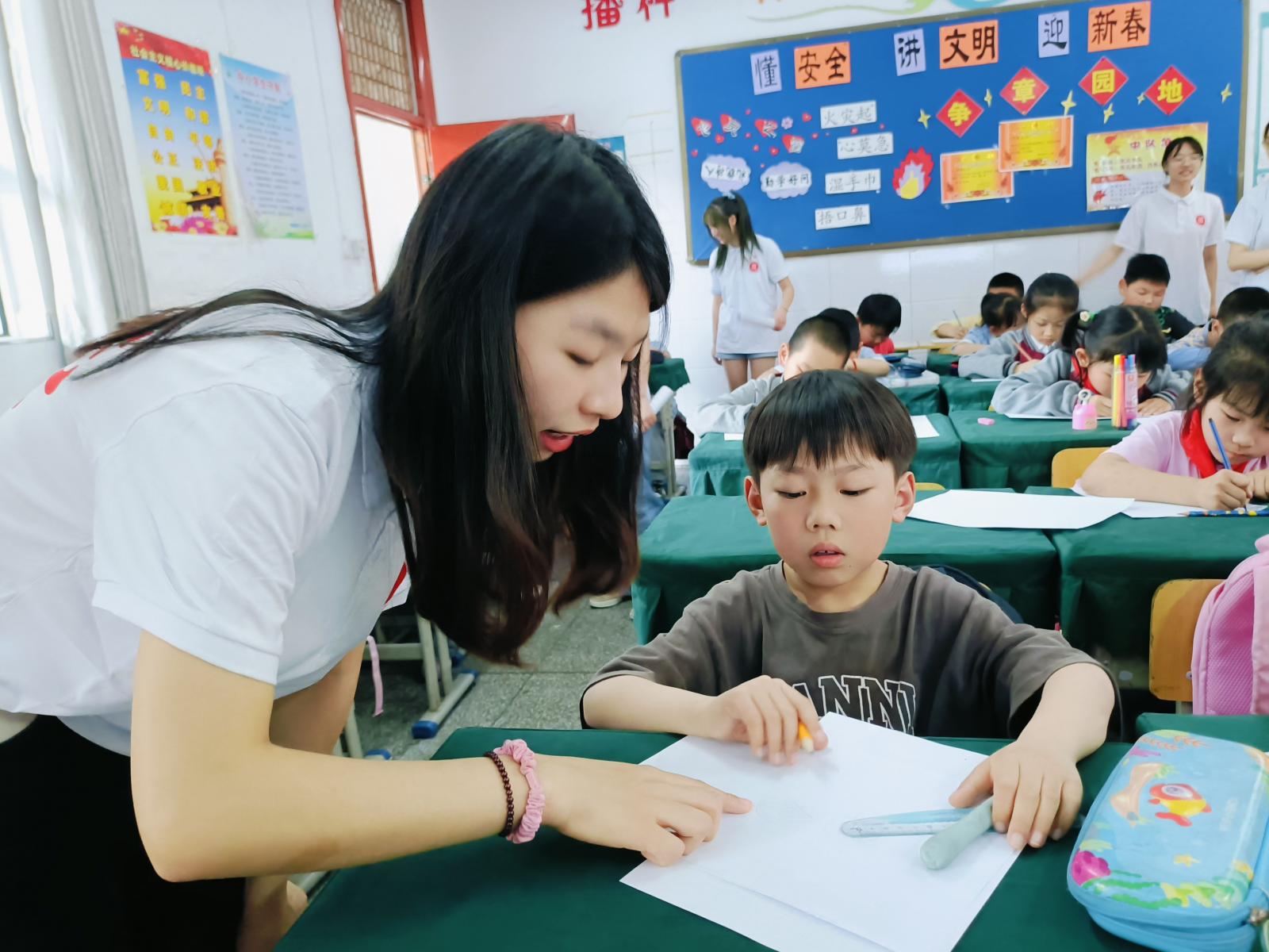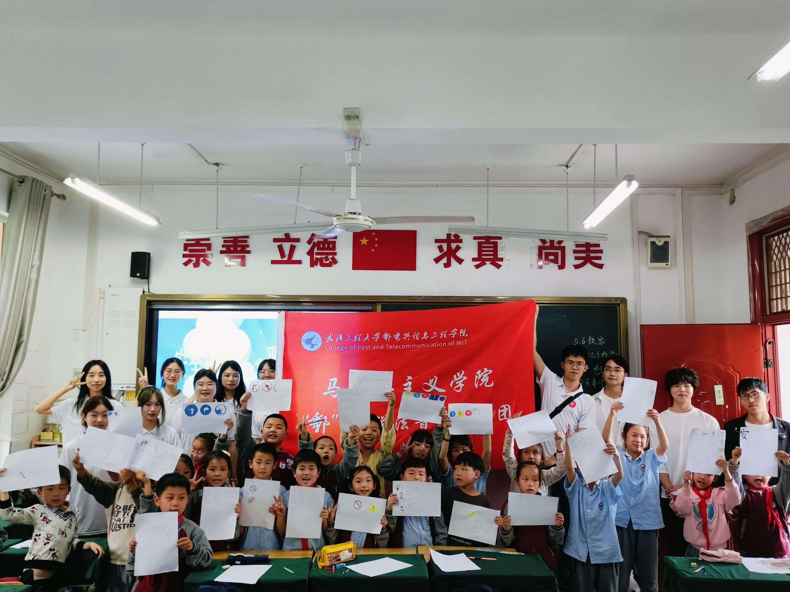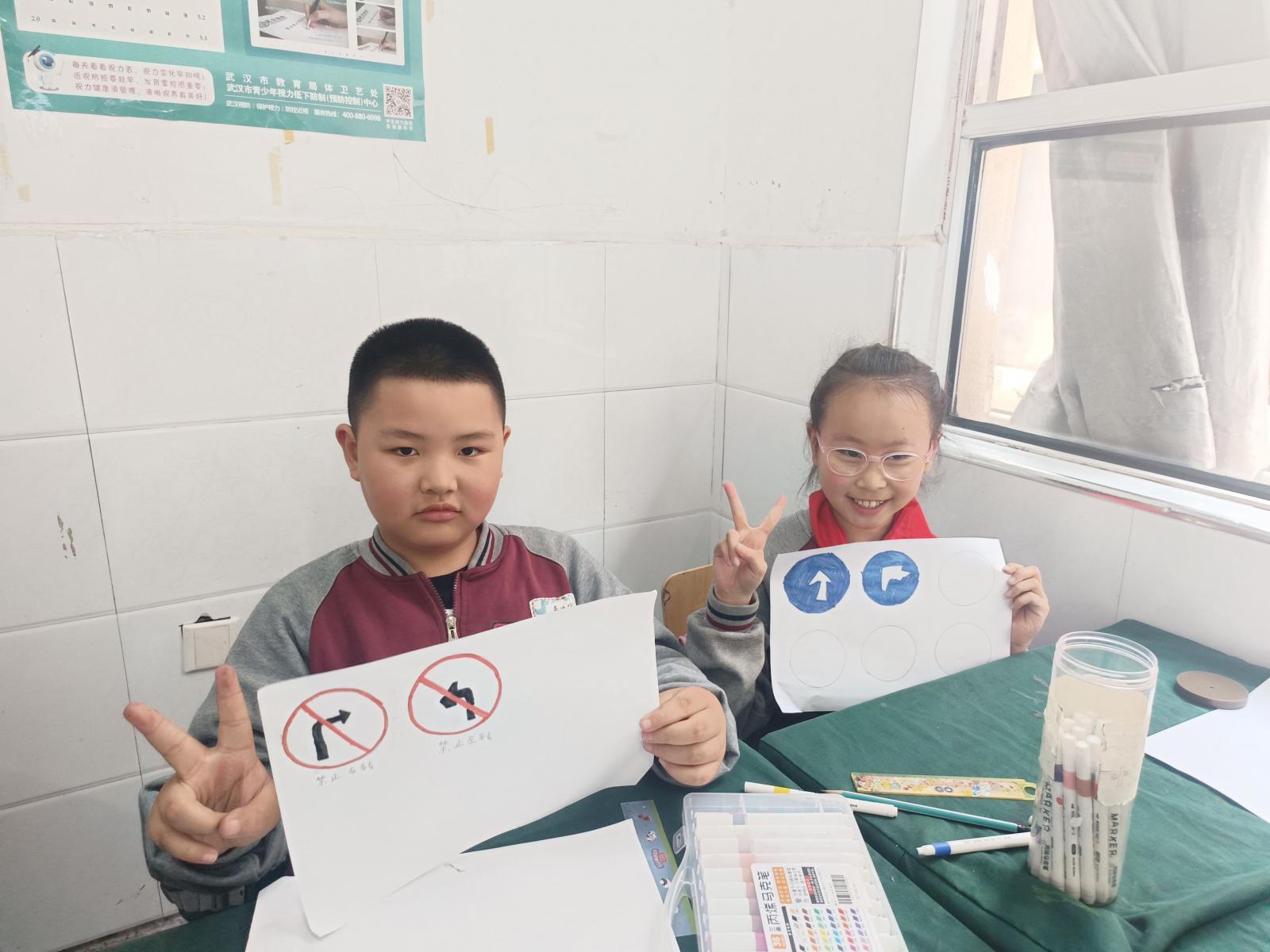 宣讲团志愿者们将普法知识与手工制作有机融合,带领同学们绘制交通安全标识、制作求救电话,寓教于乐,帮助他们认识到遵守交通规则和掌握安全标识的重要性,增强维护个人和他人的生命安全的行动自觉。