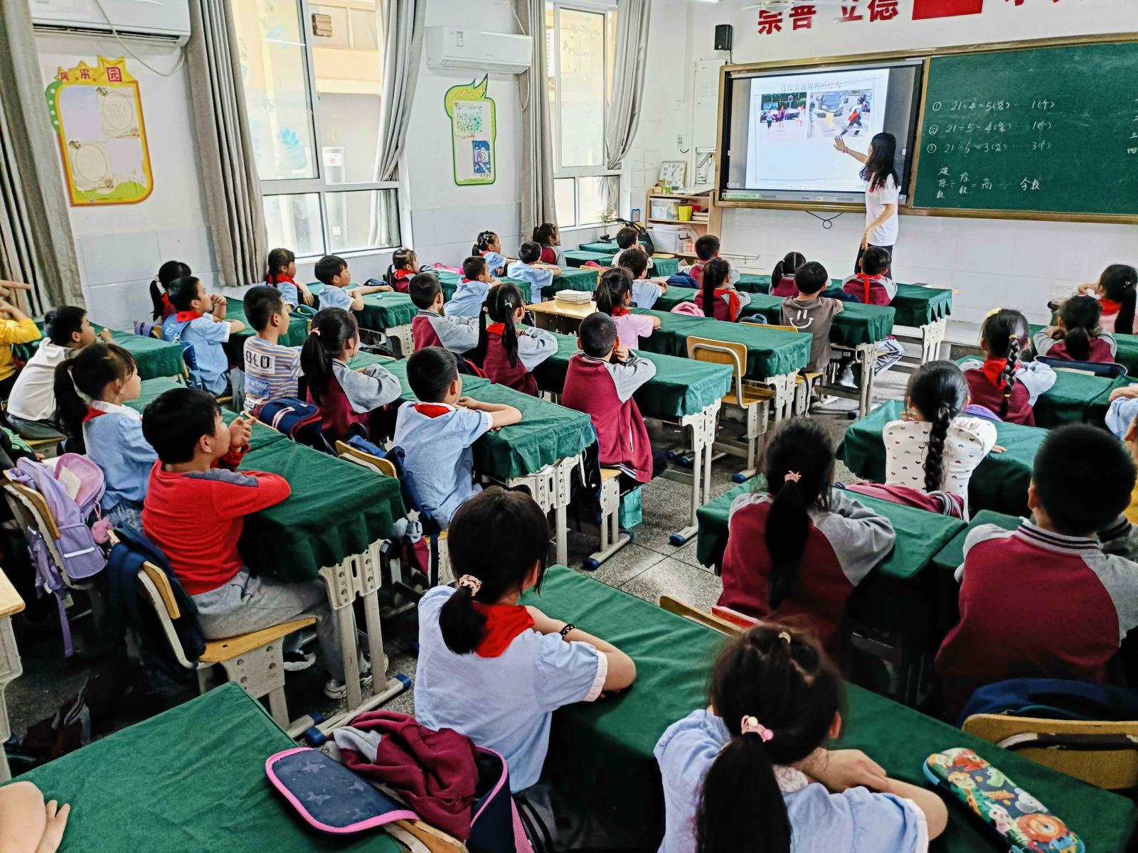 在第一讲的特色课程中,宣讲团成员王丹以《道路交通安全法实施条例》为基础,聚焦交通安全主题,向二年级的同学们系统讲解了交通安全标识、交通法规等内容,结合发生在身边的交通事故案例,通过普法漫画的形式,引导广大未成年人进一步掌握交通安全知识和法律常识,提高辨别是非和自我防范的能力。在交通安全知识趣味抢答环节,同学们积极参与,现场氛围热烈,激发了他们学习交通安全知识的热情。