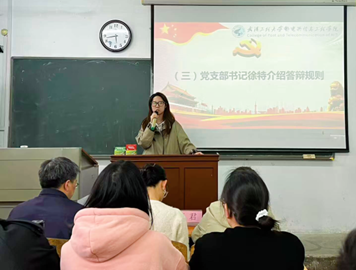 第三党支部书记徐特为大家详细地介绍了拟发展对象答辩的规则,重点强调了作为一名党员的责任与担当,鼓励同学们始终向党靠拢,保持初心,积极进取。
