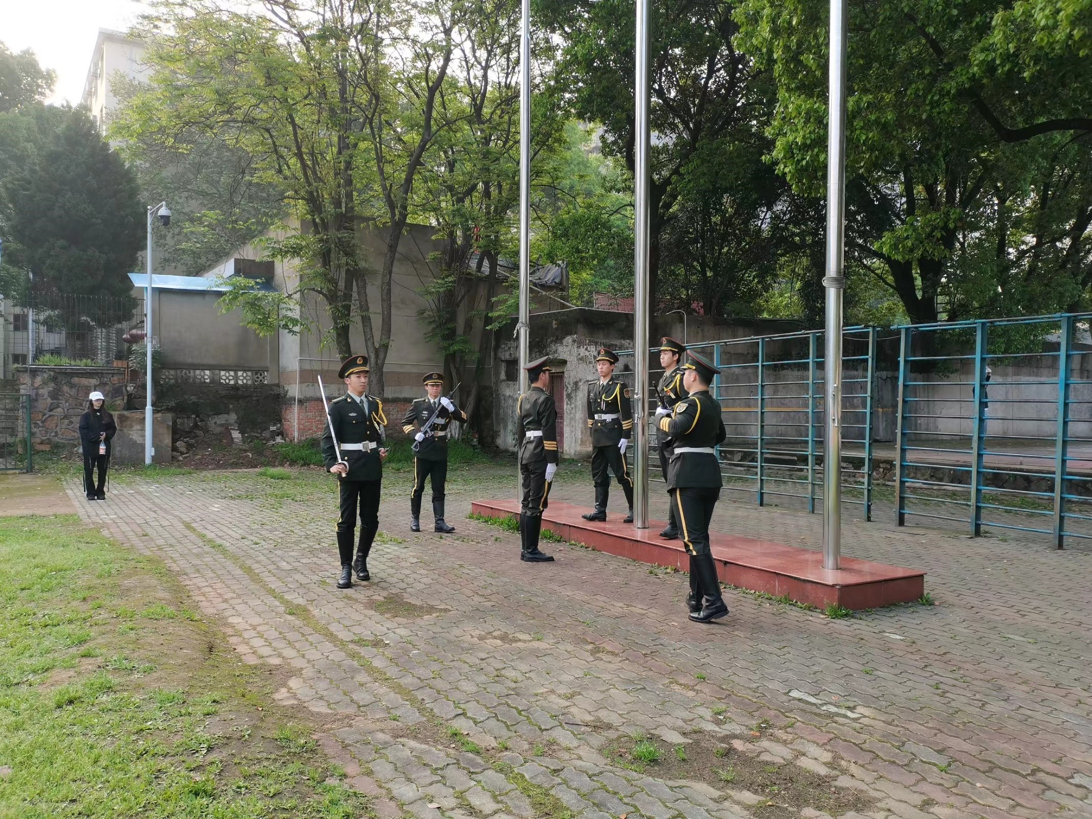 活动第一项,升国旗。迎着朝阳,国旗护卫队迈着铿锵的步伐护送国旗入场,全场一片肃静。在激昂的国歌中在慷慨激昂的《义勇军进行曲》中,升旗手振臂一挥,鲜艳的五星红旗在朝阳下徐徐展开,在初升阳光映照下,五星红旗冉冉升起,迎风飘扬。全体师生向国旗行注目礼,身怀对祖国无限的热爱和崇高的