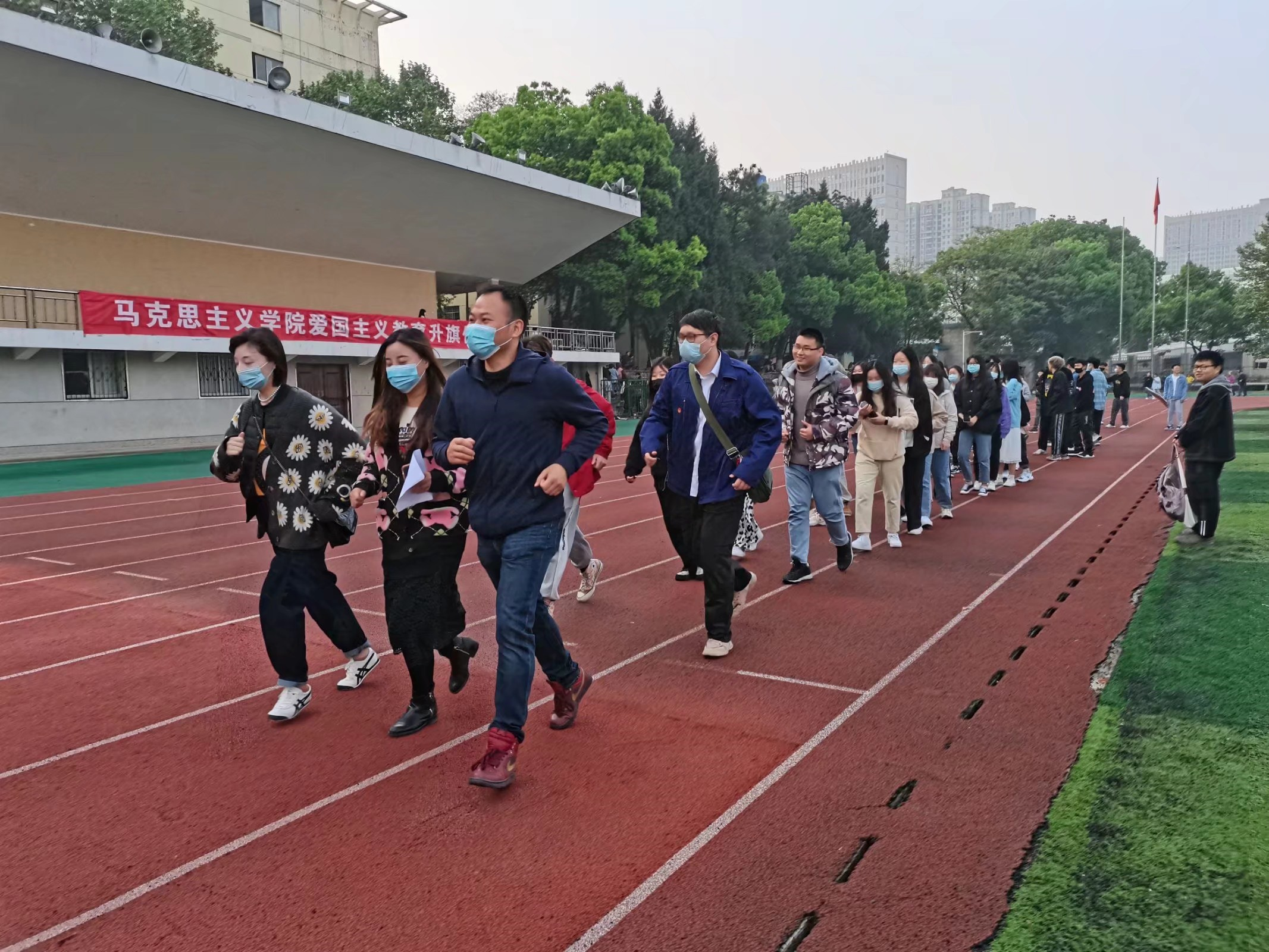 活动最后一项由孙书记,张翔老师,邵悦老师带队全体员工跟随围绕操场慢跑,深刻践行“四二一”活动。