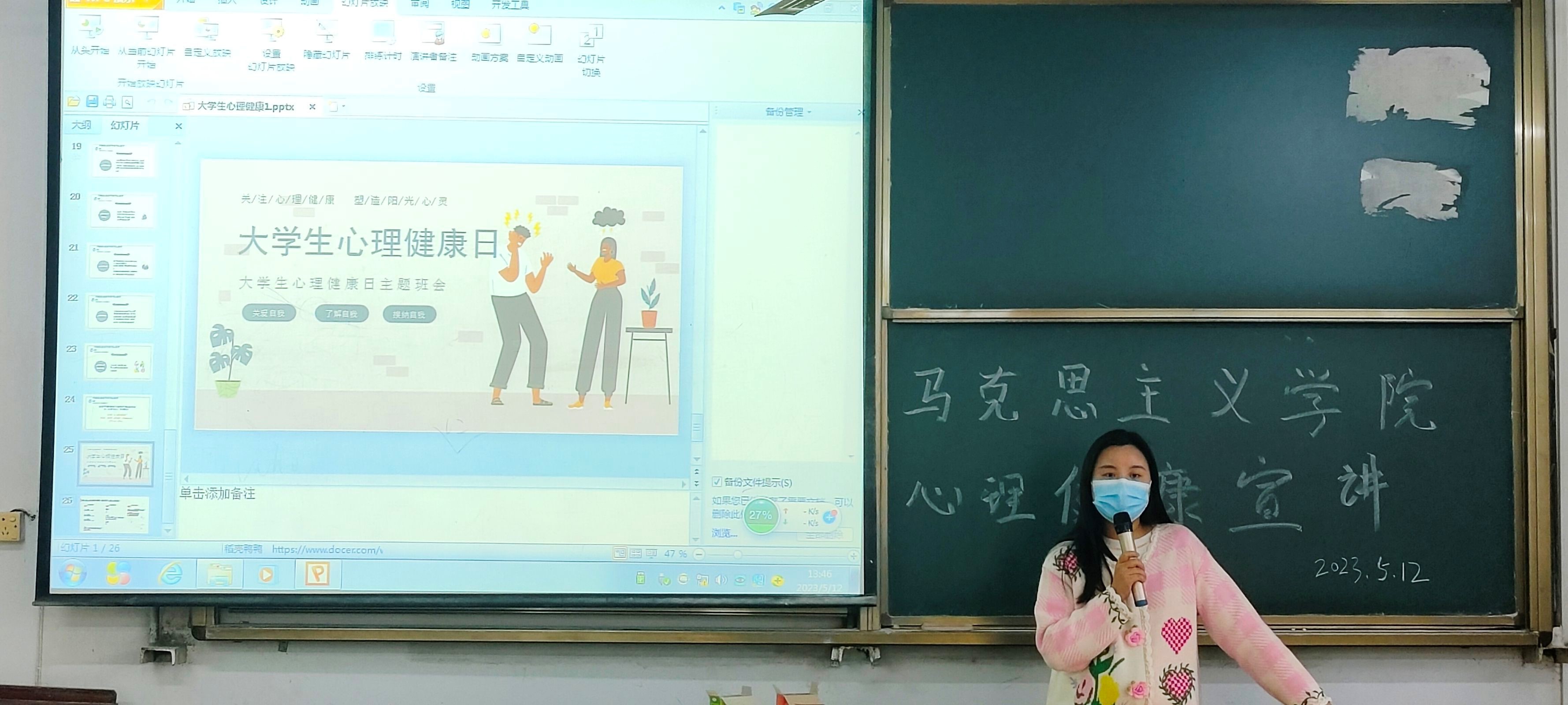 随后,张翔老师从如何正确理解心理健康,老员工心理健康标准,老员工常见的心理问题以及老员工应如何面对心理问题展开具体讲述。张老师引导同学们主动思考老员工人际交往重要性和必要性。张老师强调参会人员应起好带头作用,多关注寝室成员动向、倾听了解同学们的心声,主动传播心理健康知识,经营和谐温馨的班级寝室氛围,遇到超过能力范畴的问题及时发现、及时上报。