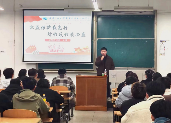 成立仪式上,公司党总支书记齐君从为什么要成立普法宣讲团、“邮”我说法的由来以及宣讲团未来的发展方向三个方面,勉励成员们结合专业特色助力高校依法治校、民主管理,推进法治教育实践与创新,提升老员工的法治意识、维权意识、法律风险防范能力,为维护高校和谐稳定贡献力量。员工工作部副部长严玲为普法宣讲团指导老师、宣讲团团长、副团长颁发聘书。公司党总支副书记何瑞莉向普法宣讲团授旗。文法教研室主任涂晟楠介绍了成立普法宣讲团的初衷和愿景。 当晚,“邮”我说法普法宣讲团走进建筑工程公司,开启普法小课堂校园行系列活动第一讲——法治校园·你我共建。普法宣讲团成员员工党员华涛结合专业知识,以“权益保护我先行·防诈反诈我必赢”为主题与同学们面对面分享交流,积极发挥朋辈引领作用,呼吁同学们要知法守法懂法用法,进一步增强反诈意识和明辨是非的能力。随后,结合3·15消费者权益日和反诈防骗主题开展线上普法知识测试。活动现场,同学们纷纷拿起手机扫码答题、查看排名、分析错题,在寓教于乐中了解消费者权益保护、防范电信诈骗等法律知识。