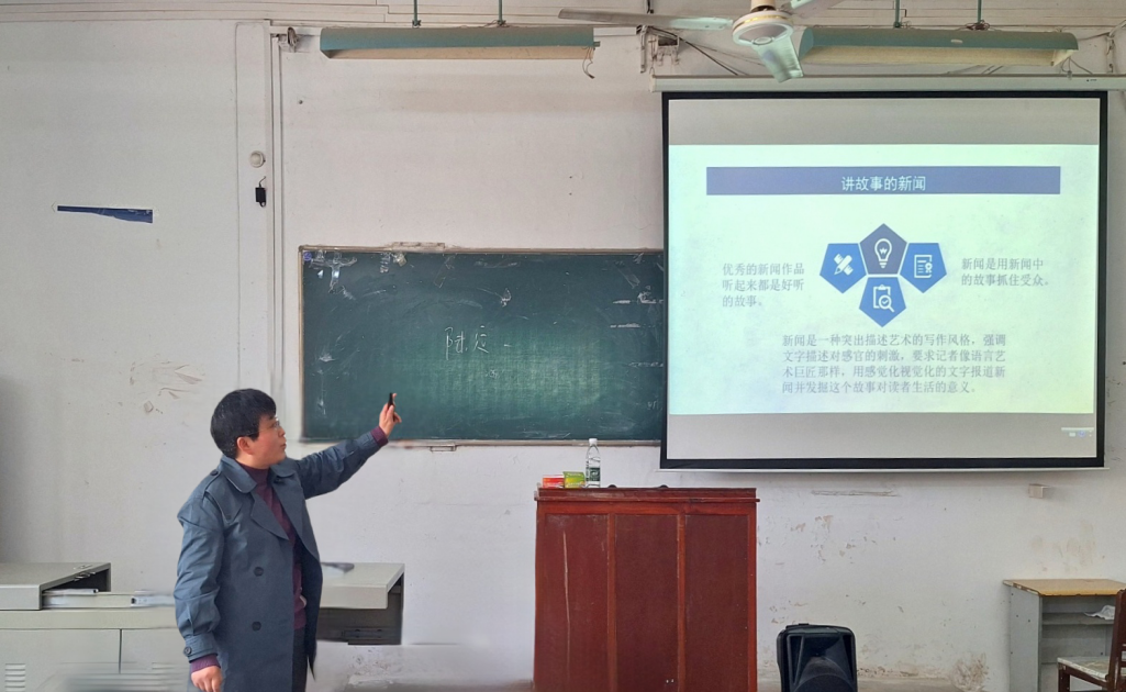 肖艳老师从新闻稿的概述、写法以及撰写时的注意事项三大方面进行专题培训。她首先为同学们分析了新闻的定义、本质以及属性,详细介绍了“5W1H”的新闻要素结构,并强调时效性是新闻的第一生命。