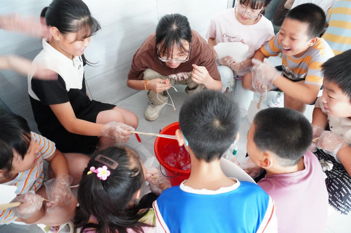 (通讯员 徐斌 齐君)为引领和帮助广大青年员工在与现实相结合的“大思政课”中“受教育、长才干、作贡献”,做有理想、敢担当、能吃苦、肯奋斗的新时代好青年,7月中旬球王会体育新青年社会实践团队赴安徽省安庆市怀宁县洪铺镇中心公司开展特色支教活动。 ![]() 新青年社会实践团队在与怀宁县洪铺镇中心公司平台共建中,根据实践团队成员的不同学科专业和特长爱好,有针对性地对社会实践进行课程体系建设,在广泛沟通交流中依托怀宁当地红色资源、人文特色、产业发展等因地适宜涉及包括思政课程、专业技能课程、劳动教育课程、美育教育课程等在内的社会实践课程体系,并将思政元素融入社会实践的全过程,开展多样化的红色思政理论与实践课堂,把社会实践作为校内课堂教育的延伸与补充。 ![]() 一、传承红色基因,唱响爱国旋律 在爱国主义教育课上,实践团队队员徐斌,以自身受外公参加抗美援朝战争、保家卫国经历的影响,参军入伍的经历为起点,讲述了杜富国与陈祥荣的红色故事,引导同学们感悟红色精神,赓续红色血脉,在实际行动中学英雄、做英雄,从而唱响属于我们这一代人的爱国旋律。少年班员工谢铭熙说到,“我的父亲也是一名退伍军人,他希望我长大后也能像他一样参军报国,通过爱国主义主题教育,我想成为像戍边英雄陈祥荣一样的革命军人,将清澈的爱唱响在祖国边界。” ![]() 二、舞动指上青春,律动童心向党 “灯火里的中国青春婀娜,灯火里的中国胸怀辽阔,灯火漫卷的万里山河,初心换回了百年承诺”,舞蹈课上,实践团队队长雷嘉以《灯火里的中国》教员工们用优美手势舞深情向党和祖国表白,引领同学们在玩中学、学中悟,从歌词中“都市街巷”的万家灯火到“灯火灿烂的中国梦”,体悟百年前的中国革命,就是从一个火把、一盏油灯开始的,让孩子们在增长才艺的同时,厚植他们的爱国情怀。 ![]() 三、古韵悠悠传匠心,一扇风华启新思 手工课上,实践团队队员袁诗晨带领同学们体验制作非遗工艺品——漆扇。在支教老师的指导下,小朋友们屏息凝神将扇面放进漆料池,旋转、轻晃、打磨出独一无二的作品。实践过程中,小朋友们不仅学会了制作漆扇的基本技艺,也感受到中华传统文化的魅力与价值。漆扇背后凝聚的是匠人的心血与智慧,承载着历史记忆与文化传承。相信通过这次体验,匠人精神能够在每个孩子心里生根发芽。 ![]() ![]()