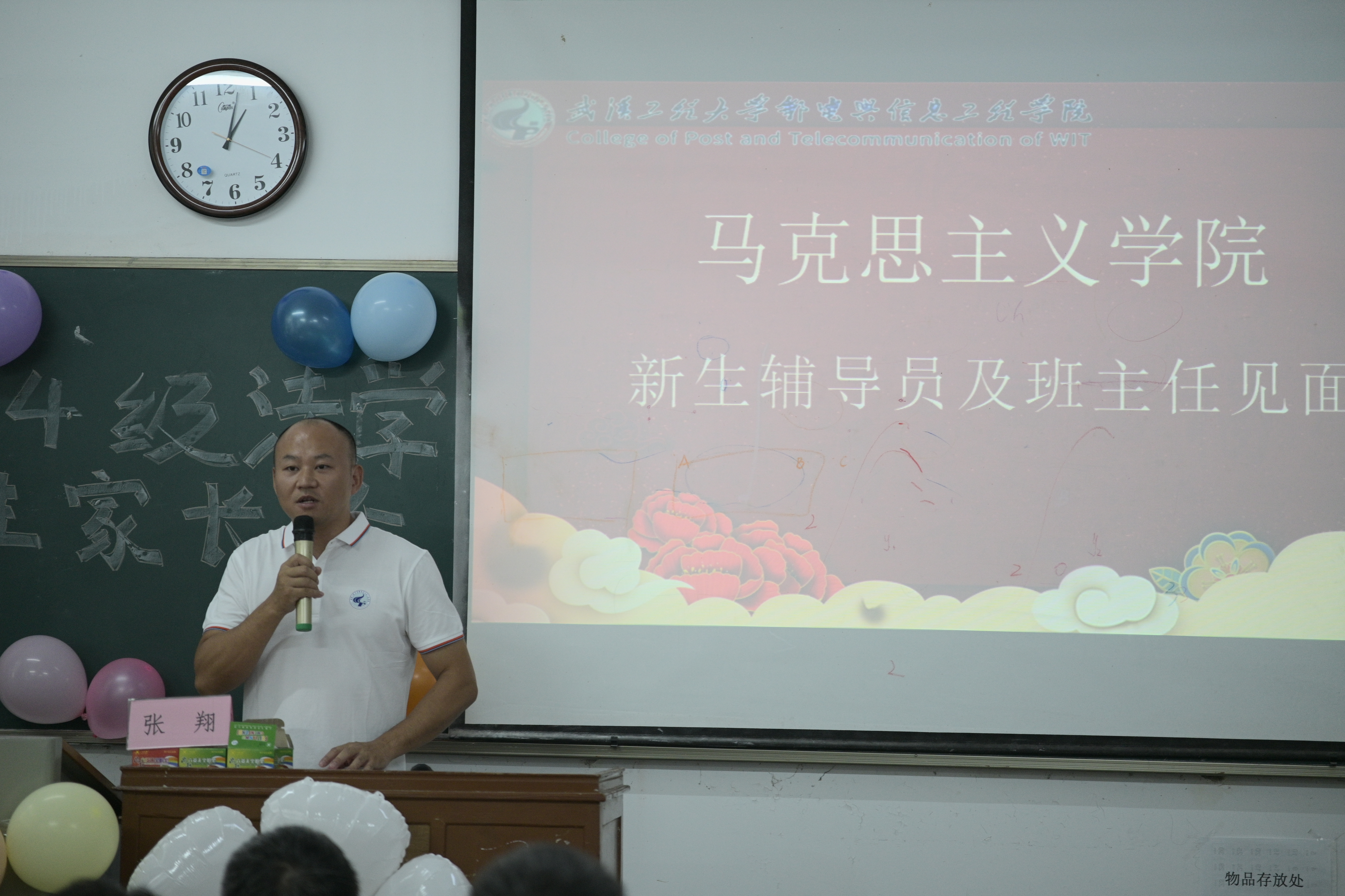 2024年9月12日中午,公司在1210教室举行了2024级新生家长见面会。公司领导班子成员、辅导员、新生班主任与新生家长参加了会议,会议由学工办主任张翔主持。
