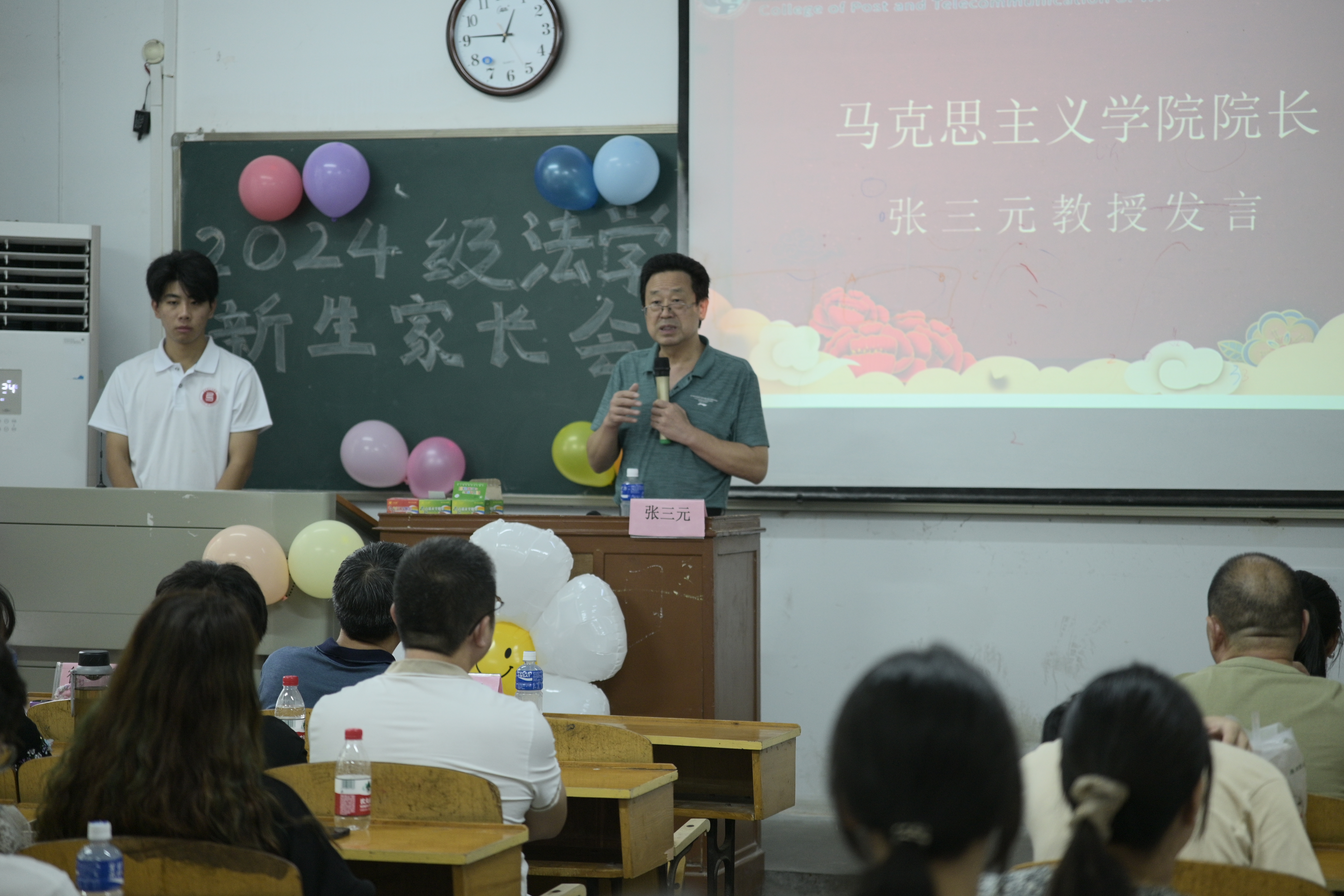 公司经理张三元教授对新生和家长表示了热烈欢迎,介绍了公司的基本情况,指出了法学专业所面临的严峻的就业形势,家长和员工都要有清醒认知,帮助自己孩子合理设定目标,叮嘱新生做好学习规划并朝着目标不懈努力。